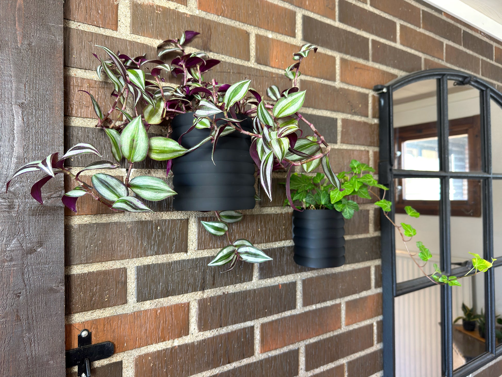 Krukorna är designade och producerade av oss på WickeD Solutions med precision och omsorg. Tack vare det väggmonterade systemet kan du enkelt låta växterna bli en naturlig del av rummets uttryck – perfekt för alla hemmets utrymmen. Den mattsvarta ytan framhäver växternas färger och ger en elegant kontrast till både ljusa och mörka väggar.